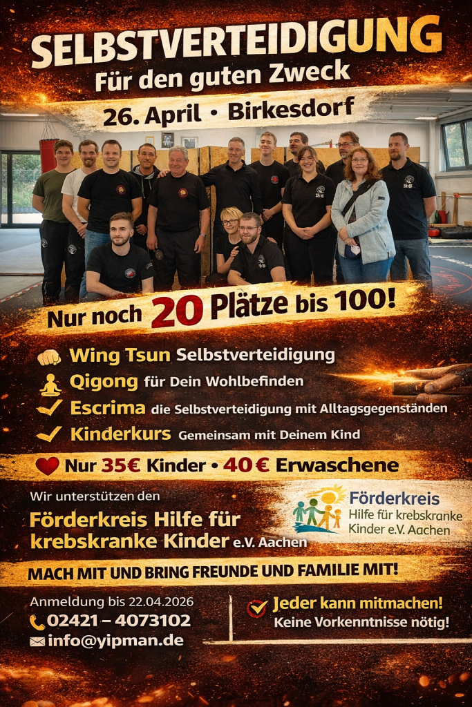 Spendenübergabe an die Hospizbewegung Düren-Jülich e.V. Am 24. November 2025 überreichte die Yip M.A.N. Kampfkunst-Akademie Dai-Sifu Mario De Luca eine Spende an die Hospizbewegung Düren-Jülich e.V.. In den Räumen der Akademie nahm Dr. Detlef Struck, 1. Vorsitzender der Hospizbewegung, den Betrag persönlich entgegen. Bewegender Moment – starke Leistung der Kinder Für den feierlichen Rahmen sorgten