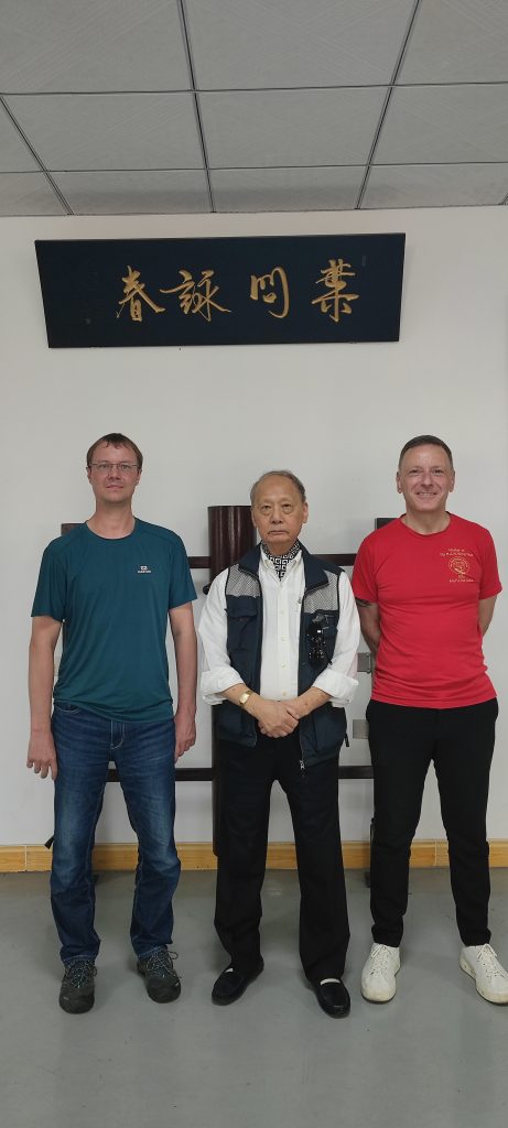 Die Stunden vergingen wie im Flug, so dass der Großmeister uns zum Abendessen einlud. Es war ein sehr schöner Tag mit vielen Erkenntnissen. Bevor ich mich dann verabschiedete und für alles bedankte sagte der Großmeister ich solle mich morgen noch mal bei ihm melden und ich sollte ihm meinen Vor- und Nachnamen aufschreiben. Ich war sehr verwundert, doch ahnte ich nicht worum es gehen sollte. Als ich am nächsten Tag wieder die Akademie vom Großmeister besuchte, saß er bereits in seinem Sessel und beobachtete die anwesenden Schüler – wie man dieses aus Kung Fu-Filmen kennt – sehr genau bei der Ausführung ihrer Kung Fu-Techniken.