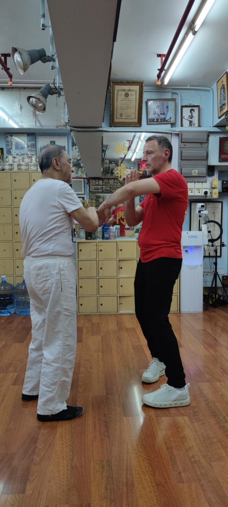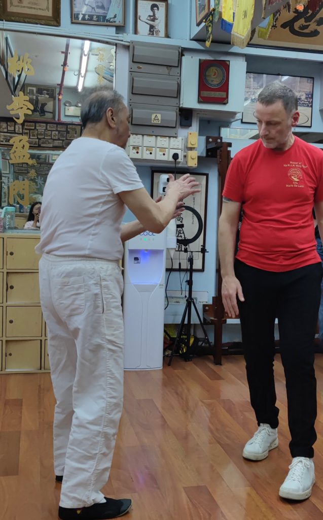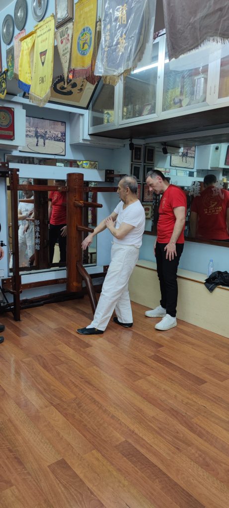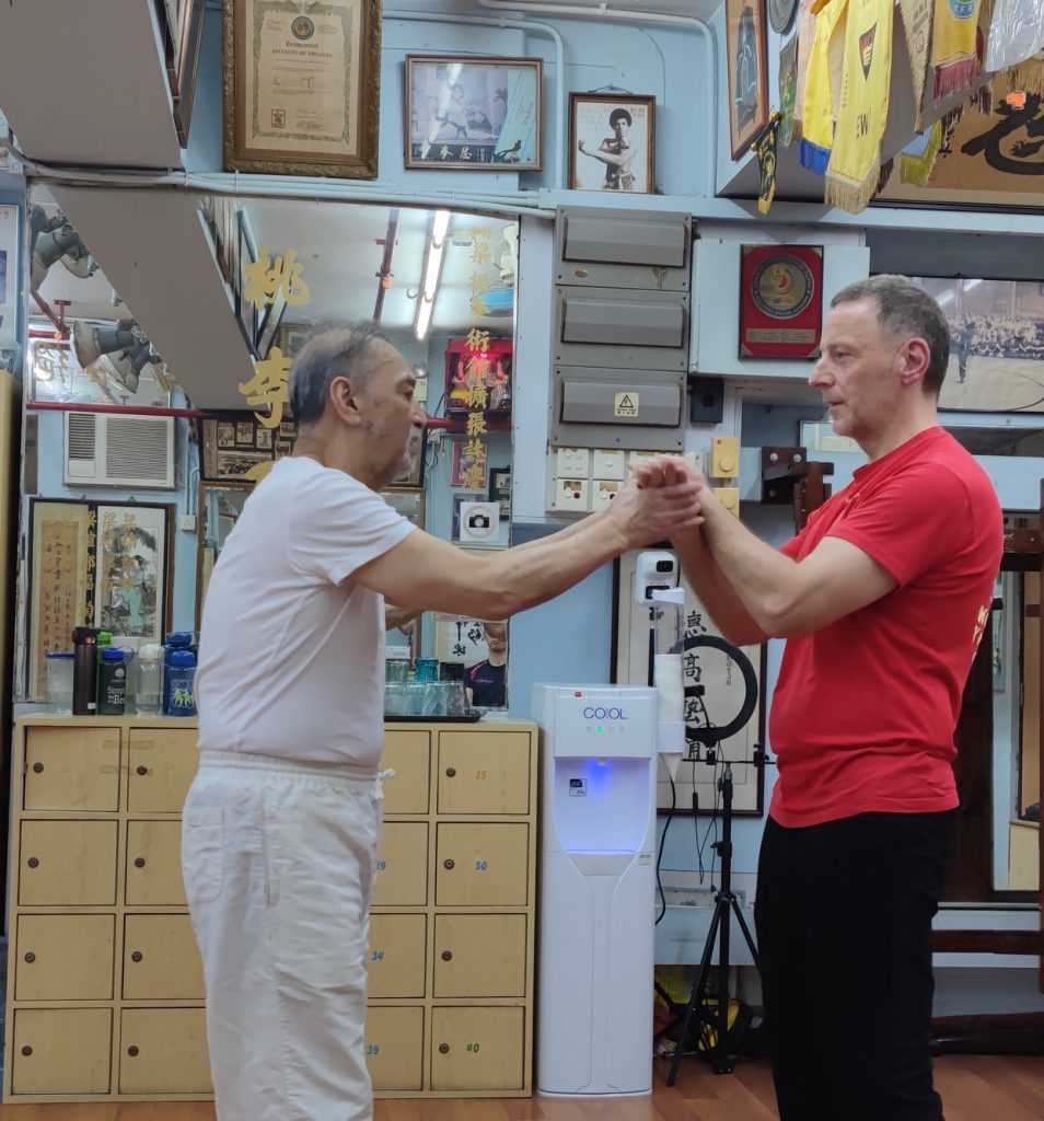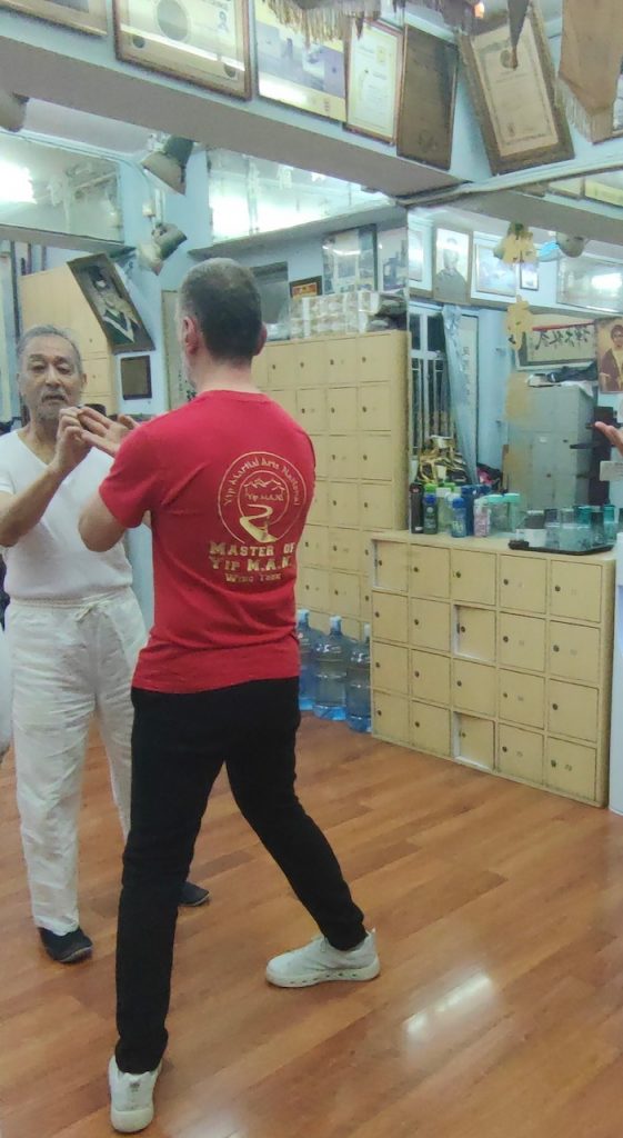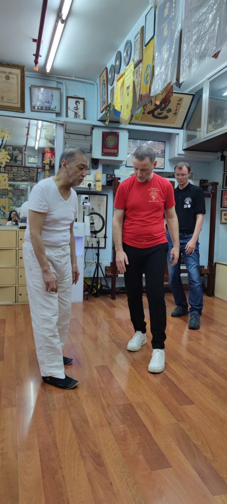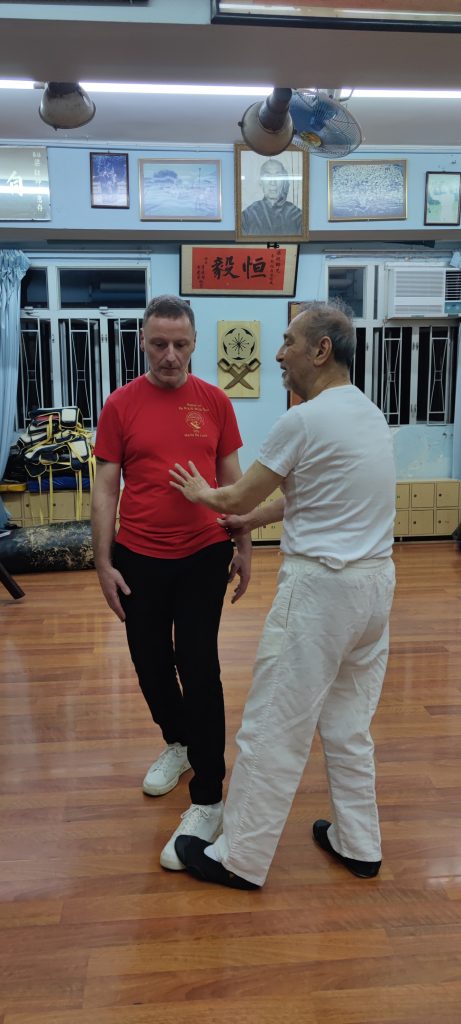 Da ich bereits auch schon in Deutschland und in den USA von dem bekannten Großmeister aus Hongkong, Leung Ting, Seminare besuchte, nahm ich mir vor, diesen auf meiner Reise zu kontaktieren. Das Glück stand auf meiner Seite. Ohne zu wissen, ob ich ihn am besagten Unterrichtstag antreffe, fuhr ich mit einem Taxi dort hin und tatsächlich traf ich Großmeister Leung Ting an. Da ich ihn im Jahr 2000 in Los Angeles traf war ich vorbereitet und habe ihm Fotos von der damaligen Zeit gezeigt. Darüber war er sehr erfreut und ich bekam die besondere Gelegenheit, in seiner Mutterschule von ihm Privatunterricht zu bekommen.