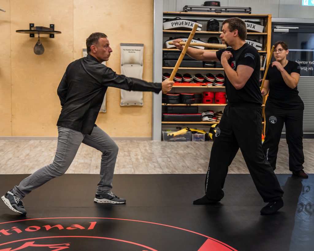 Escrima ist wegen seiner speziellen und hochentwickelten Waffentechnik mit Stock und/oder Messer bekannt. Aber auch alltägliche Gegenstände wie Schlüsselbund oder Handy können dadurch zur Waffe werden.